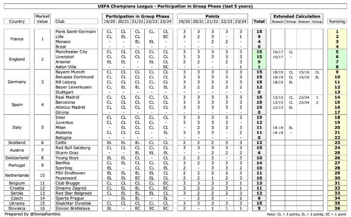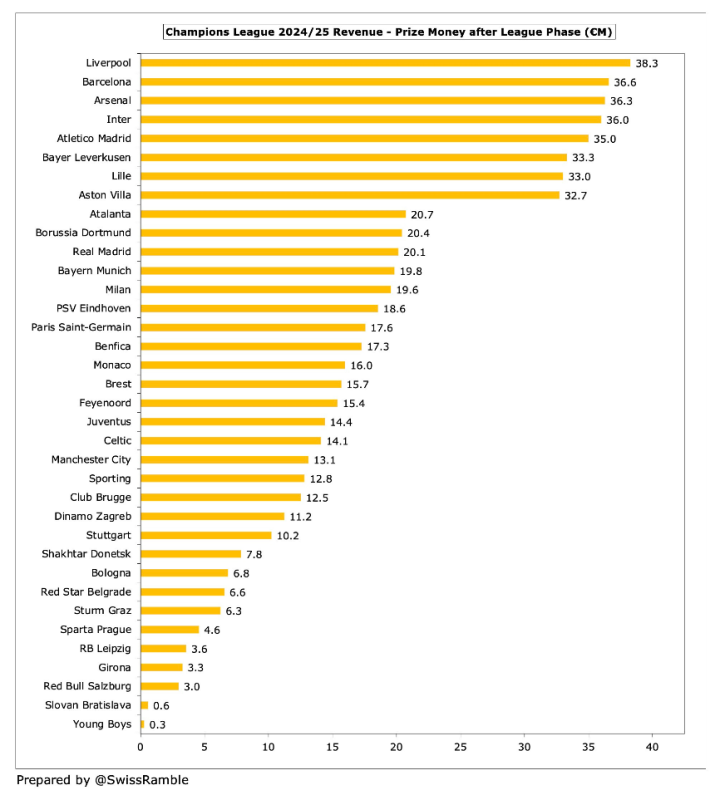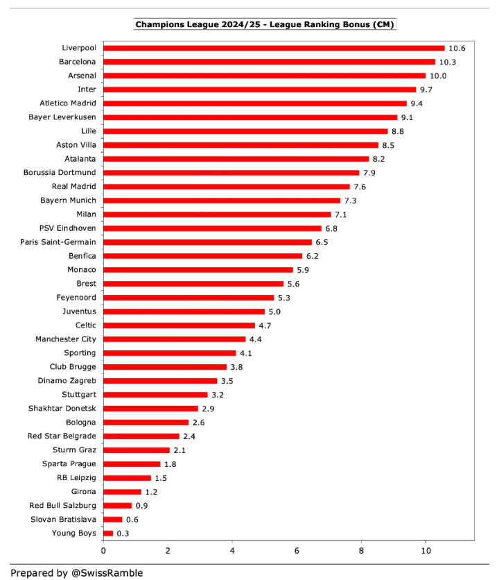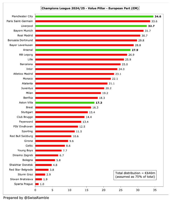 新的“价值支柱”更为复杂,涉及到欧洲市场和非欧洲市场的媒体版权收入,以及俱乐部过去几年的欧战表现等因素。这部分奖金的分配主要有利于来自大市场的豪门球队。